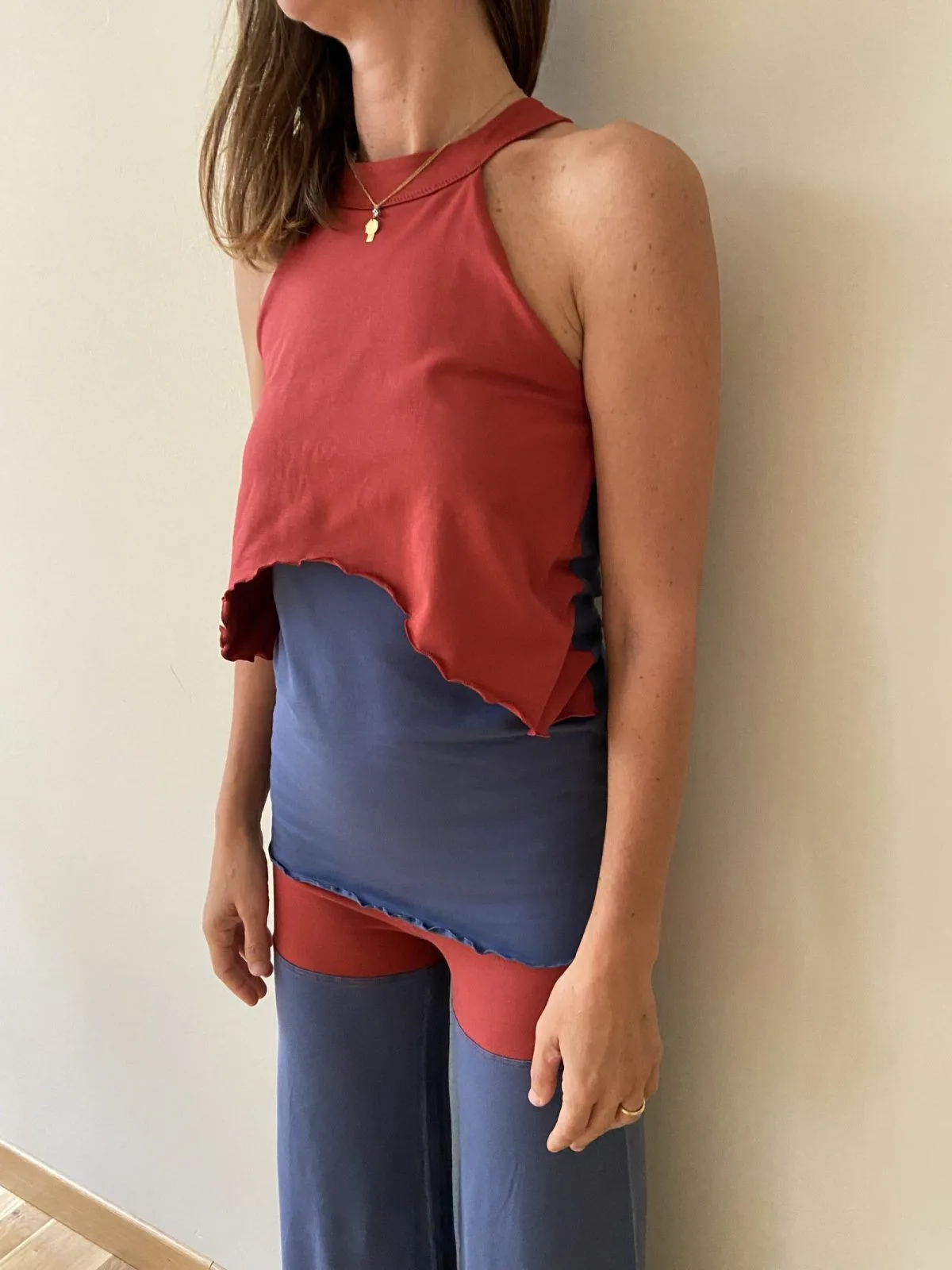 Maglietta yoga donna CASCATA bi-colore: la forma del Maglietta vuole ricordare l’acqua che scorre, il movimento verso un futuro di successi e un forte simbolo di rottura della staticità. È un capo molto comodo per la pratica, perfetto per ogni tipo di Yoga, fatto con tessuto di un morbido cotone organico dalla vestibilità piacevole e confortevole.