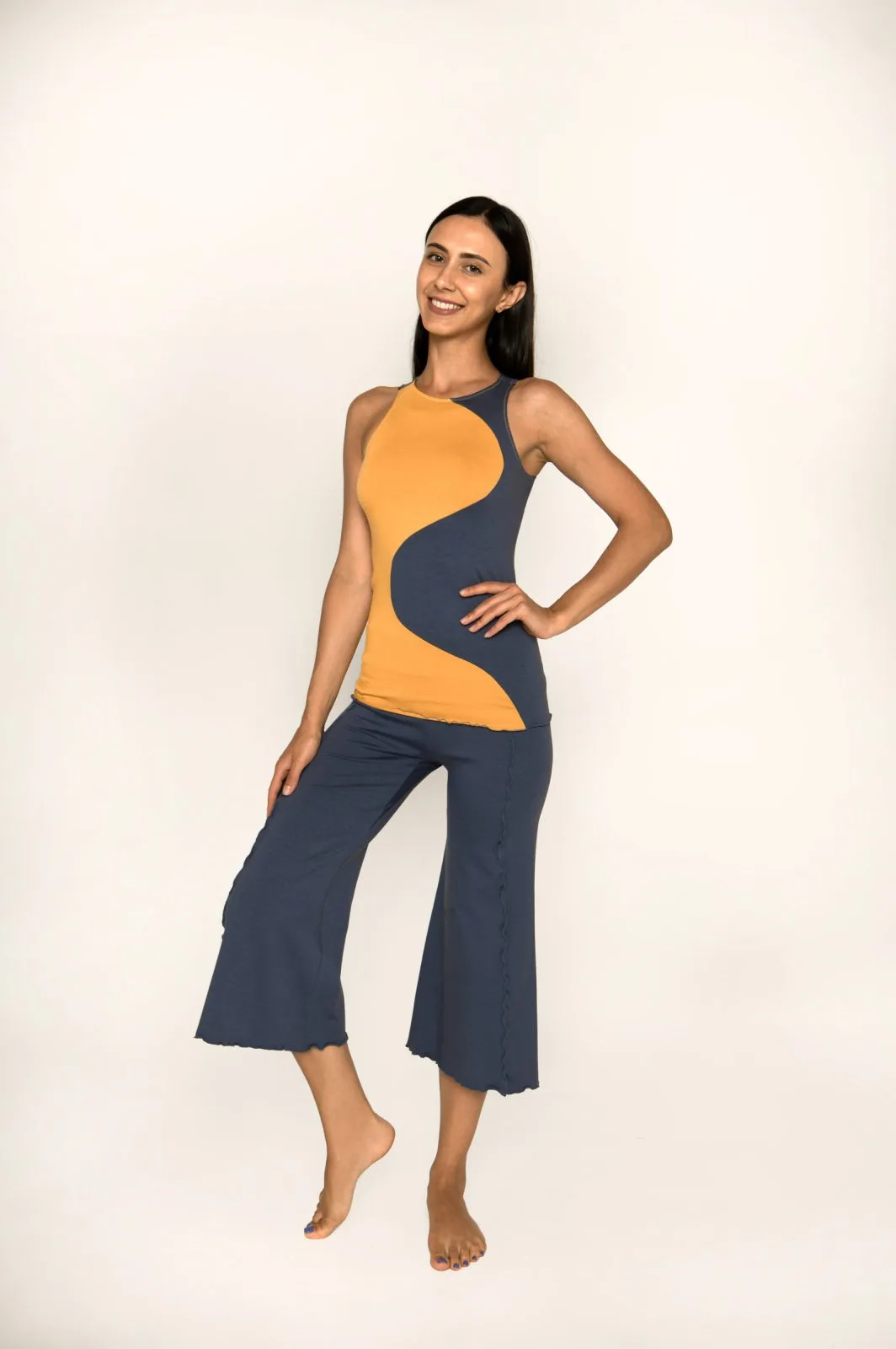 La maglietta yoga donna YIN/YANG è creata con due colori, riprende l’idea dell’attrazione di due forze opposte che generano armonia e sinergia. È perfetta per praticare Yoga, fatta con tessuto di un morbido cotone organico dalla vestibilità avvolgente e confortevole.